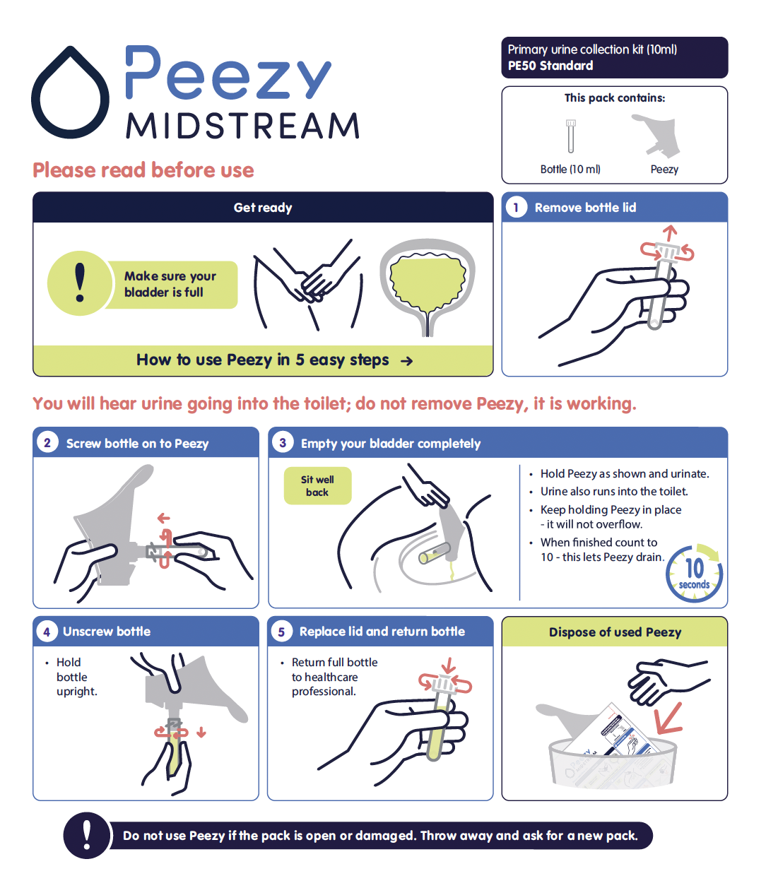 Our NHS GP designed and UK manufactured MedTech devices align with the new vision for preventative medicine, delivering right-first-time samples, improving accuracy, reducing retests, and saving money for the NHS. Buy Peezy Midstream here.